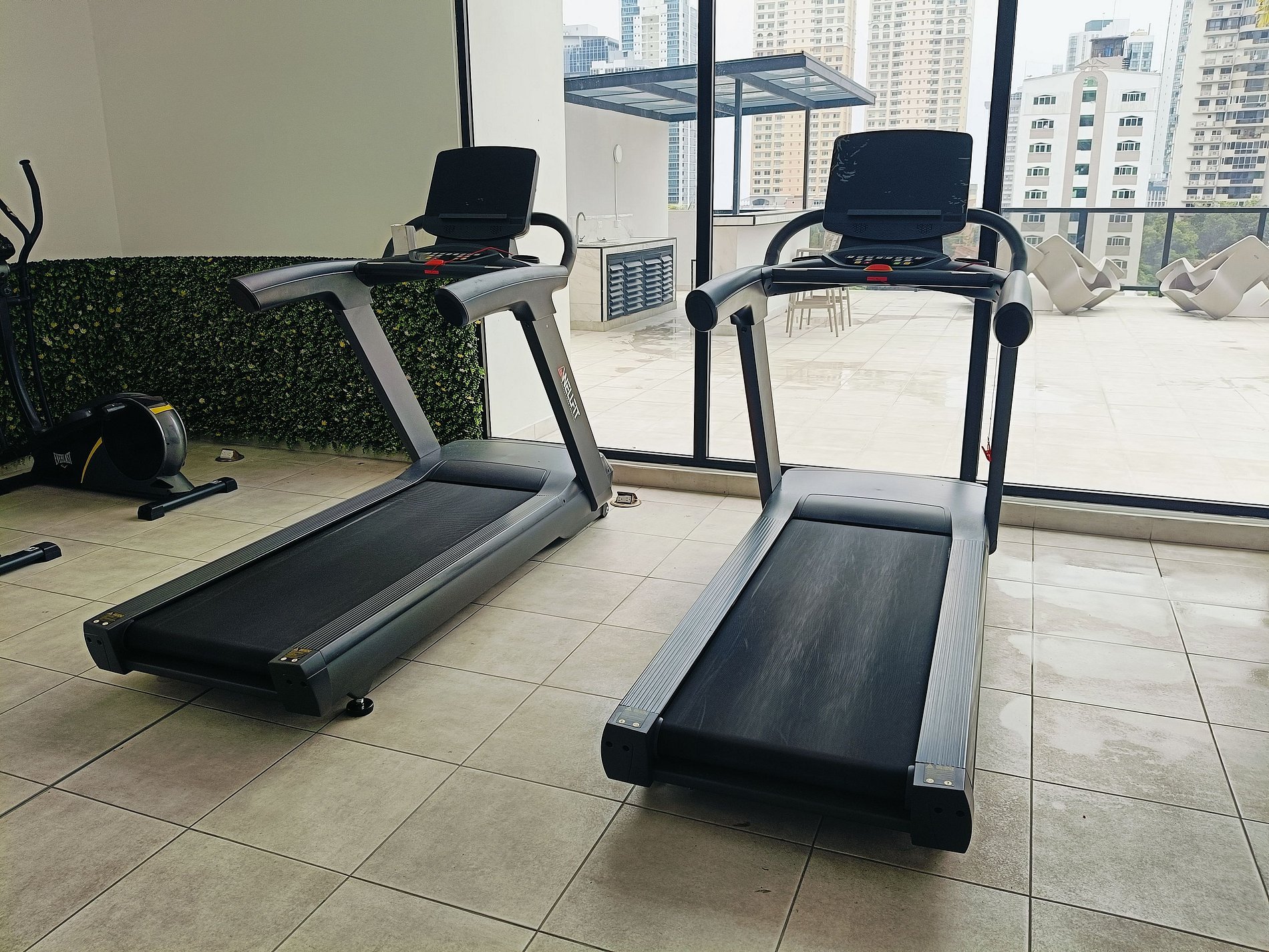 It has a gym equipped with everything you need for your routines.