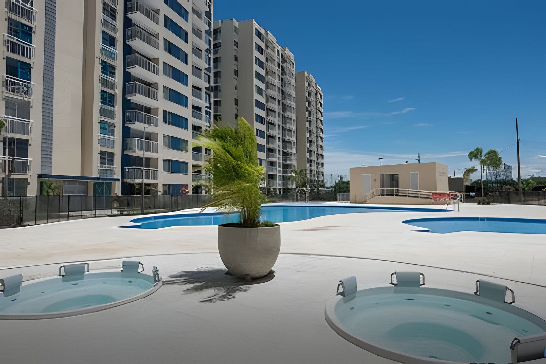 Hay 2 piscinas 2 jacuzzi canchas múltiples de deporte sala de juegos billar, ping pong, cancha de voley playa, parque para niños, piscina para niños