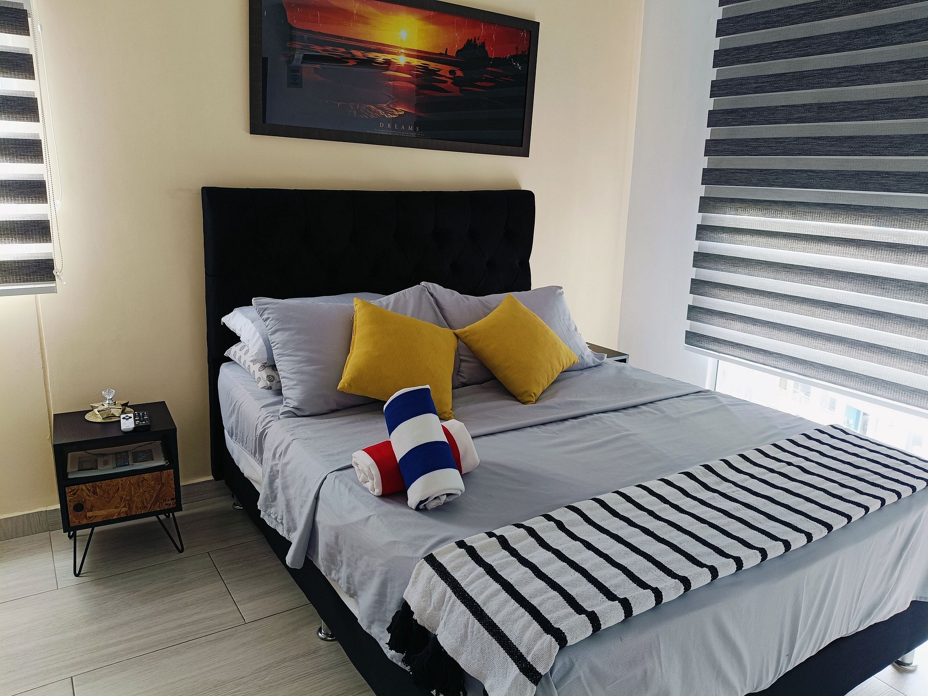 Espectacular apartamento piso 12, aire acondicionado en las 2 Habitaciones y la Sala, 3 televisores , puede alojar cómodamente a 6 personas en sus 2 habitaciones. La cocina esta dotada, juegos mesa los baños con artículos de aseo. Puerto Azul Club House es ideal para familias y amigos, cuenta con dos piscinas, zona BBQ y área deportiva cancha de voley playa, football y parqueadero Gratis. Colchones de primera wifi, se realiza aseo diario para estadías de más de 2 dias televisores con HBO y STAR+