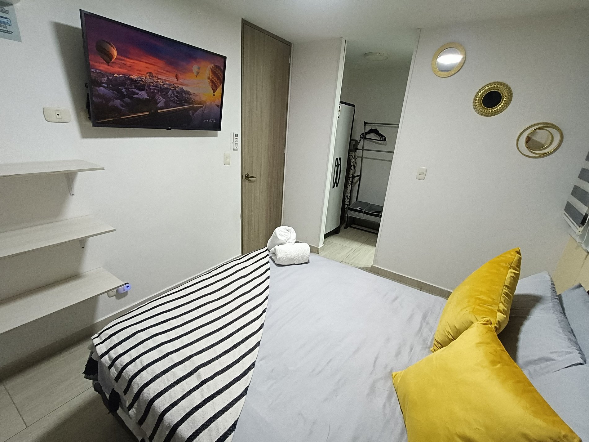 cada habitacion tiene televisor y aire acondicionado hay escritorio para trabajar con silla de trabajo cómoda los televisores tienen internet HBO y STAR+